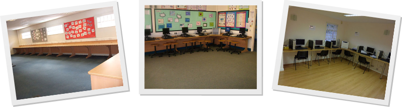PC and ICT suites are an important area of a school and can be designed to enable extra space and ease of use. They can be manufactured from veneered or laminated worktops and can be supplied with hole caps for unsightly wires and can be mounted on chrome or curved legs allowing extra seating for students.